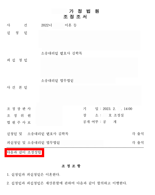 * 이혼조정, 오늘도 이솔의 성공사례는 축적되고 있습니다.