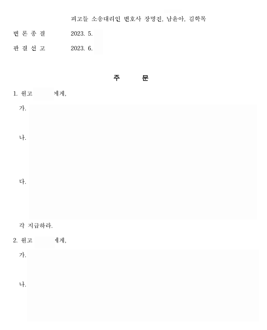 판결문 중 일부. 개인정보 등 모두 삭제함.