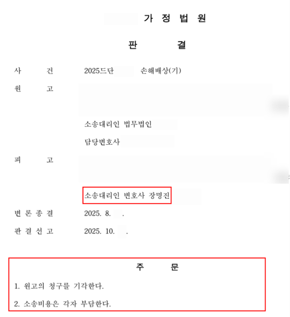 우리 의뢰인과의 최초 만남 당시부터 교제 상대방은 자신이 법적 배우자 있는 사람임을 숨기고 의뢰인을 기망하였다는 점, 그 후의 사정 등을 객관적 증거로 제출하였으며 특히 교제 상대방의 혼인이 이미 파탄상태에 있었음을 입증하기 위해 노력함.