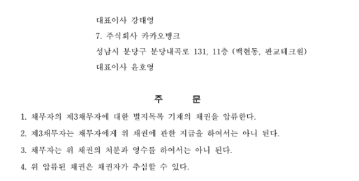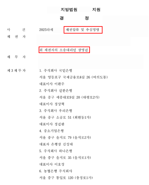 7군데 은행 계좌 압류 위하여 채권압류 및 추심명령 신청.