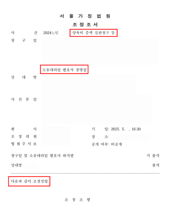더불어 공동친권은 우리 의뢰인 단독친권으로 변경 합의 성공.