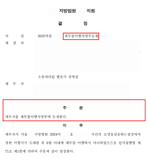 조정조서 상 받지 못한 금액과 받지 못한 기간 등을 고려하여 채무불이행자명부등재신청 진행.