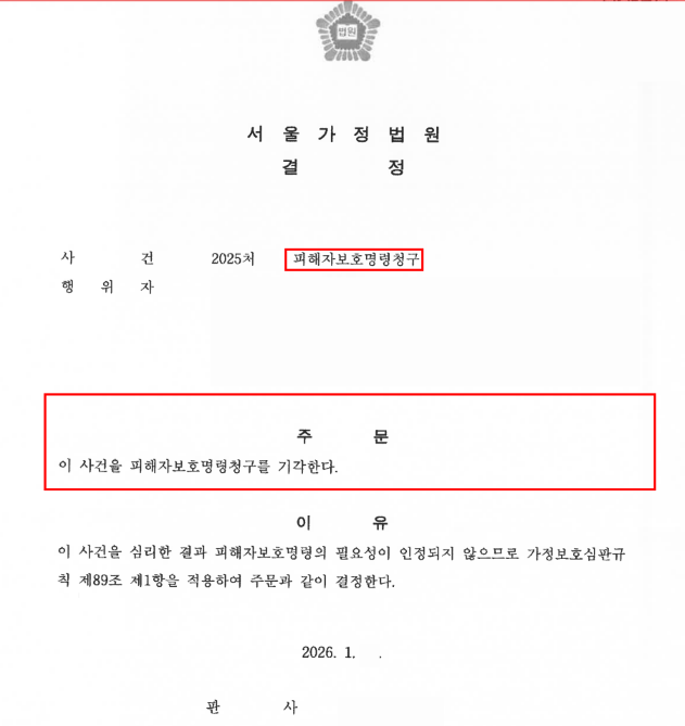 우리 의뢰인, 사실관계를 왜곡한 배우자 때문에 억울한 임시조치결정을 받았으나 이에 대해서는 따로 다투지 않았는데, 배우자는 이에 그치지 않고 자신이 보호받아야 할 피해자라는 주장으로 가정법원에 피해자보호명령 청구.
