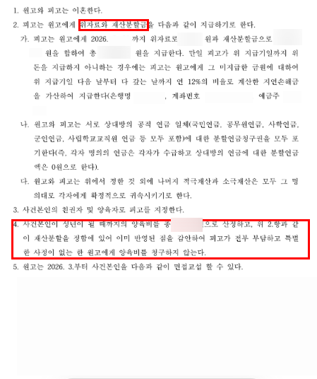 무엇보다, 조정조서에 '위자료'를 명시하였고, 자녀는 상대방 배우자가 키우기로 한 사정 등을 고려하고 자녀의 장래양육비를 감안하여 재산분할금에서 해당금액을 제하였음. 다만 결론적으로 합당한 재산분할금을 수령하게 됨.