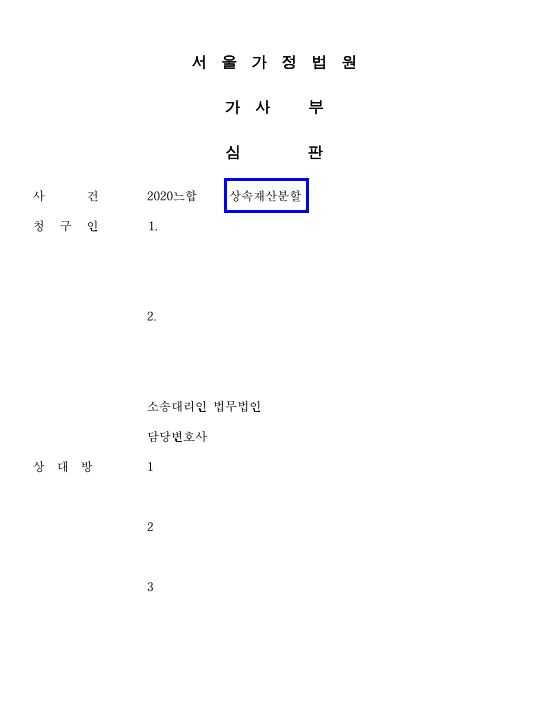 오늘은, '상속재산분할심판청구'에서 청구인이 아닌 상대방을 대리하였던 사건을 소개합니다.