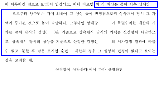 우리는 감정인이 회신하였던 해당 토지의 가액보다 몇천만원이나 더 특별수익의 가액을 줄이는 것에 성공하였습니다.
